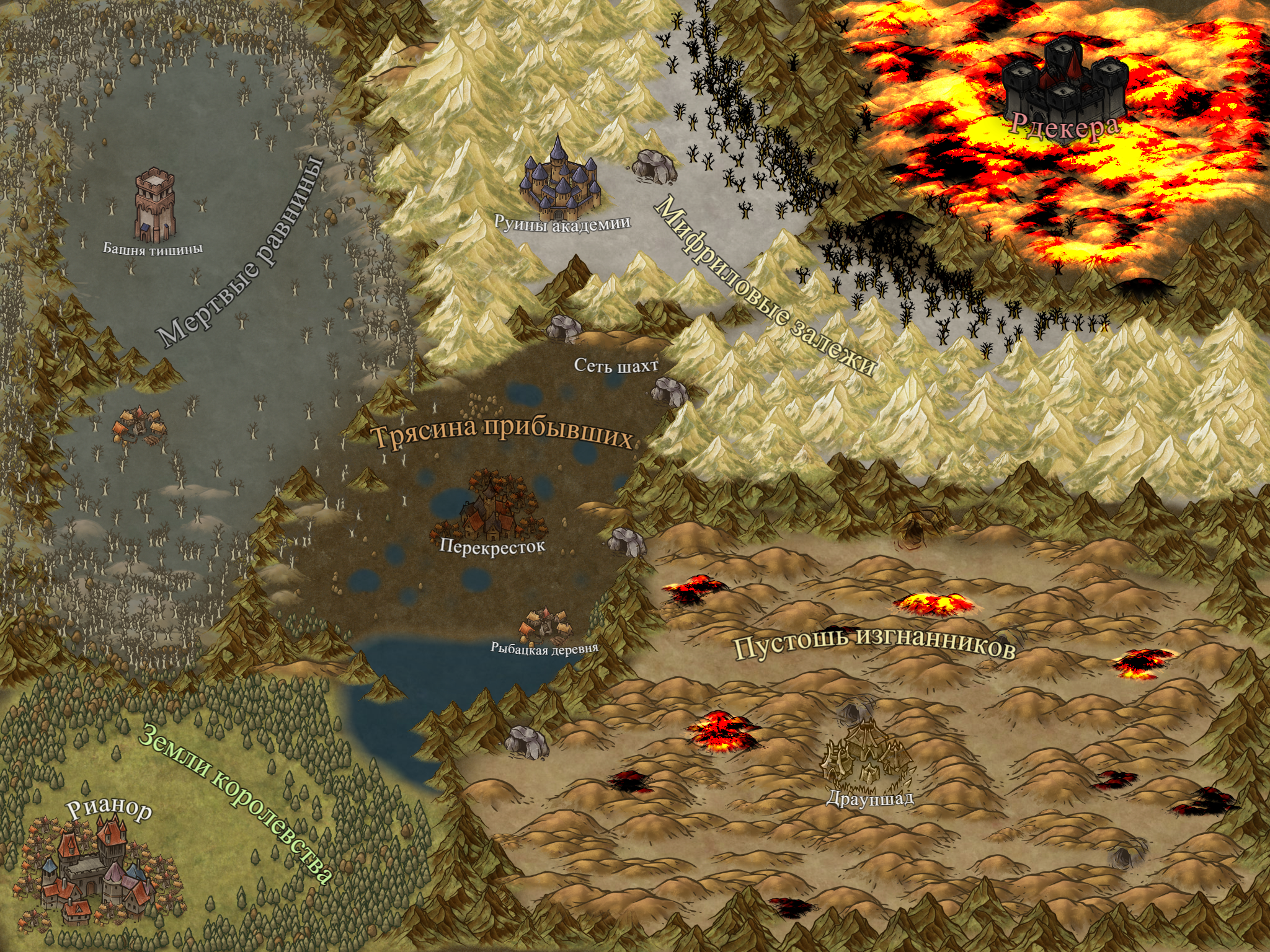 >>1568654 Все, кроме Рианора - подземелье. Карту собирал из ассетов, что были. Тут у нас условно открытое подземелье, не пещеры (кроме шахт), а подземный мир относительно просторный.