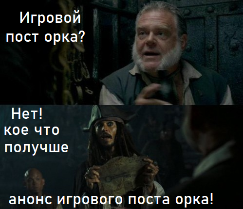 Мне кстати очень нравилось, как ты водил прошлый тред. В плане отыгрыша нпс, реактивности на действия игрока, да даже качества писанины все было супер. Мне только жаль, что под конец ты дропнул тред и не ответил полуорку, никак это не прокомментировав. В любом случае, по меркам БРГ прошлый тред был одним из самых успешных.
