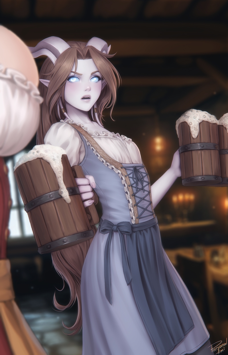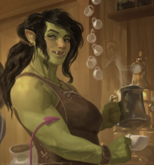 Помогает разносить напитки юная девушка-тифлинг с немного испуганным лицом по имени Равена. Портняжная лавка ее родителей разорилась и семья погрязла в долгах, так что она вынуждена работать здесь. Неловкая и неуклюжая, она явно чувствует себя здесь не в своей тарелке, однако нужда и нависшая над семьей угроза унижения и нищеты заставляют ее двигаться вперед, ведь она отчаянно нуждается в чаевых. Услужливая и немного заискивающая - она идеальный кандидат, если вам нужно что-то принести или мелкая услуга, а обмен на пару монет.