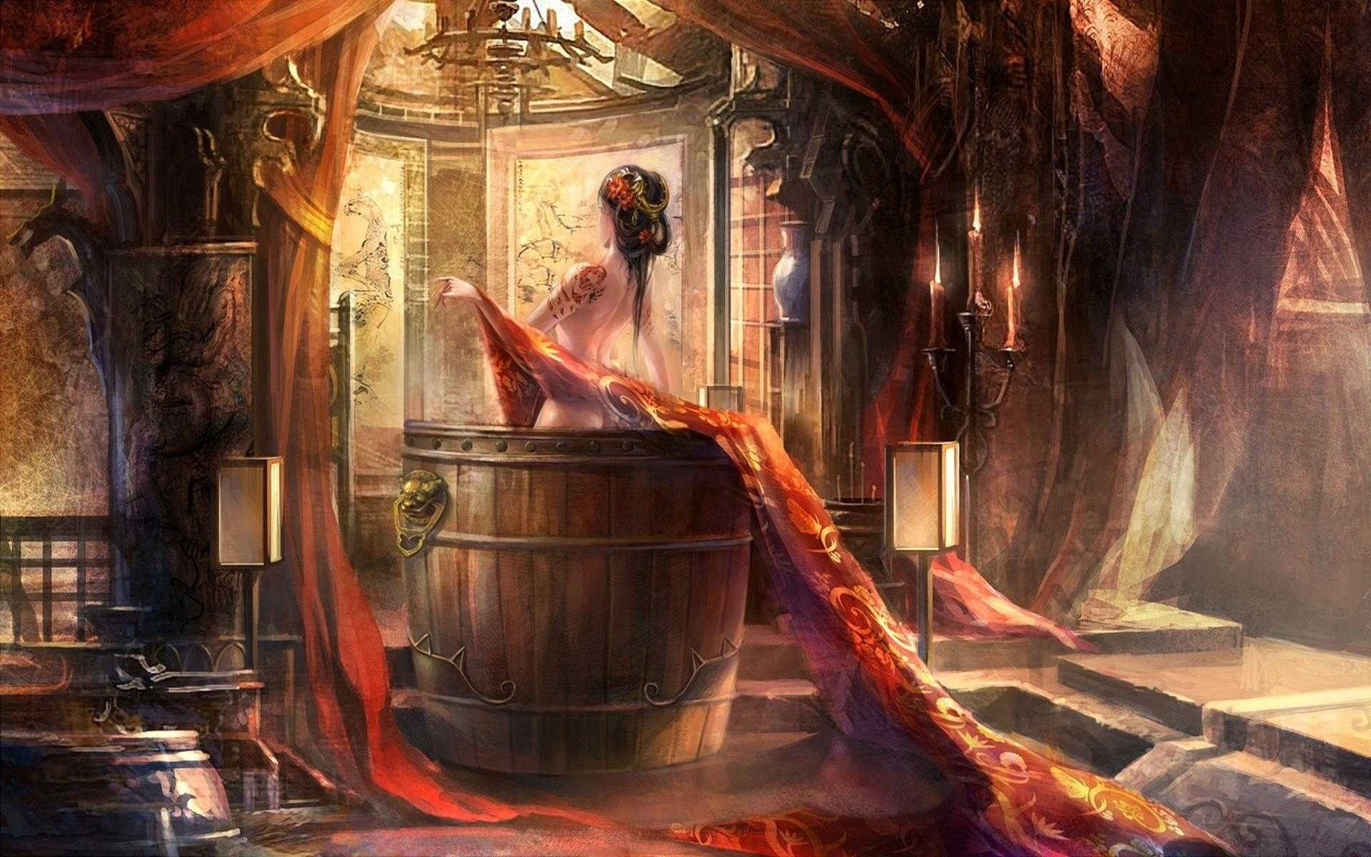 Для путников только прибывших с тракта, либо для всех желающих доступны купальни, где можно привести себя в порядок и навести марафет перед ночью излишеств и возлияний. Но конечно гораздо интересно это делать в компании жрицы любви, особенно раз уж вы все равно в борделе. Однако если у вас нет особых монет или настроения, то за одну обычную монету, вы можете смыть с себя усталость сегодняшнего для и получить все эффекты короткого отдыха (1 час).