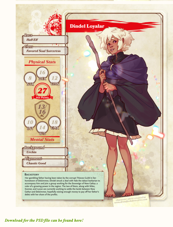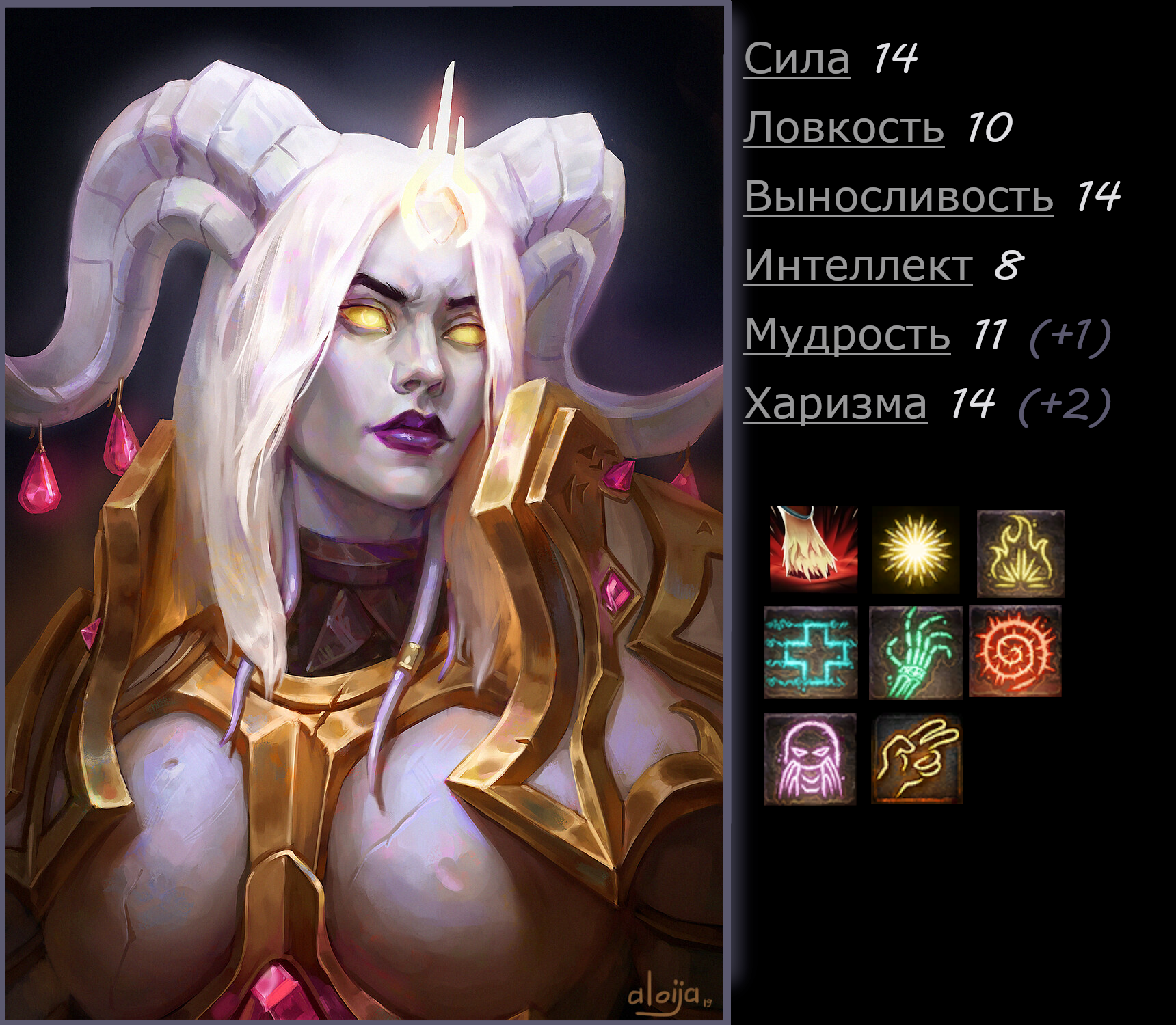 Тифлинг ур. 1 ранения ● Сил 8 Лвк 12 Тел 10 Инт 8 Мдр 8 Хар 10
