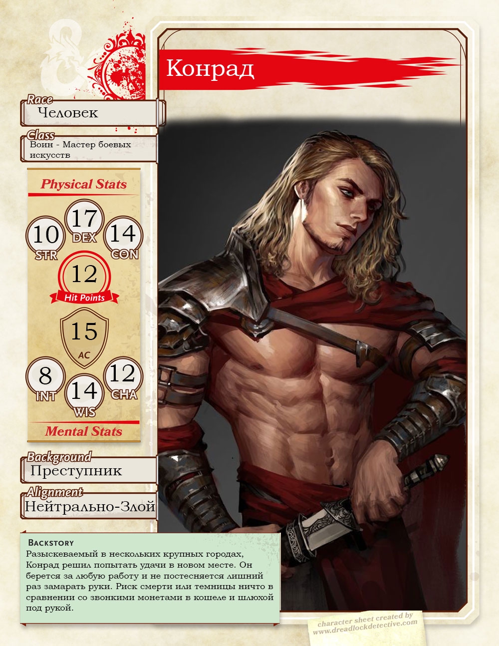 Генерация вашего персонажа: 1. Выберите происхождение, то чем ваш герой занимался до того, как встал на стезю приключенца, например ученый, солдат, отшельник, священнослужитель, ученик мага, фермер, ремесленник, стражник. Вы можете почерпнуть вдохновение в стандартном списке из D&D или придумать что-то свое. Происхождение определяет ваши стартовые навыки, бонусы к двум заданным характеристикам (+2 и +1), вашу стартовую черту происхождения и ваши инструменты, если такие будут.