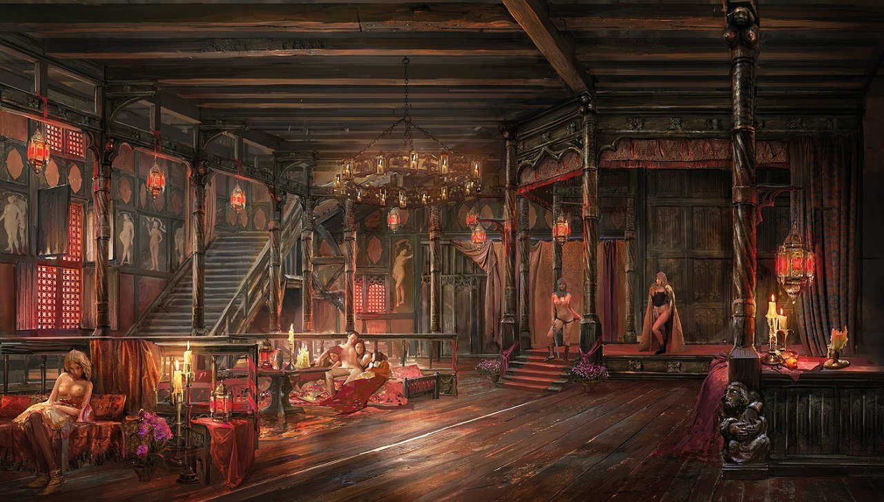 Грезы русалки Легендарное заведение заслуженно имеющее неоднозначную славу во всех уголках королевства. Интерьер в темных и красных тонах, с обилием дерева, приятен глазу, но без излишней роскоши, по крайней мере там, где он встречает посетителя. Просторные залы неярко освещены теплым оранжевым светом и по вечерам они обычно утопают в какофонии музыки, смеха, пьяных споров, женского хихиканья и песен. Впрочем понятно дело, для ищущих уединения здесь всегда найдется уголок. Публика здесь собирается самая пестрая и разнообразная, и заведение делает все, чтобы угодить как можно более широкому кругу клиентов. В общем случае, если разумно было бы предположить, что что-то может быть в подобном заведении, то поискав глазами, вы наверняка это найдете, если конечно это уместно в борделе.