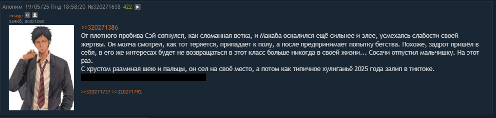 >>1578101 Проблема была именно в картинках, писать можешь в каком угодно роде. Не терли ведь ни гомоеблю в прошлом треде, ни ту же гомоеблю от маньяка.