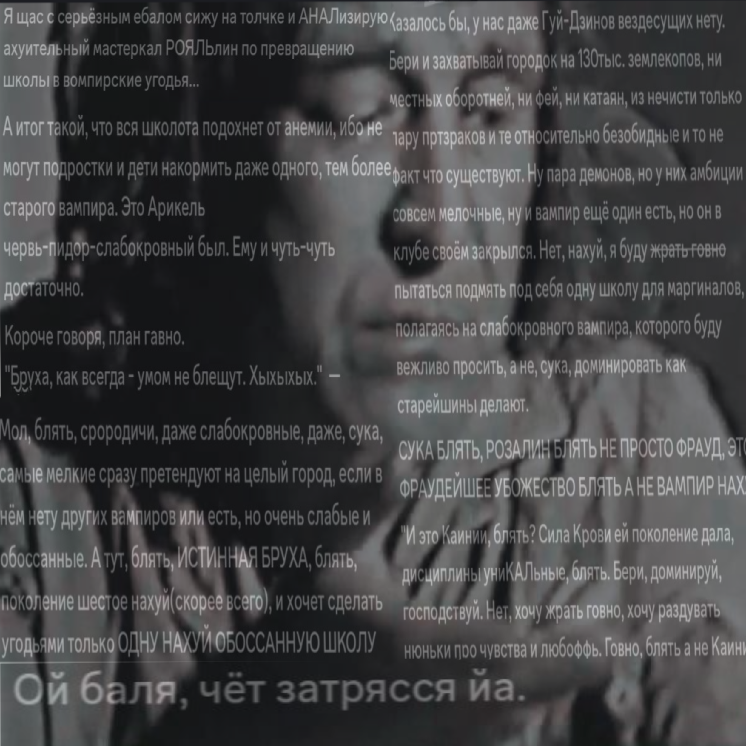 Интересно, нахуя я преувеличиваю свои негативные характеристики когда сру в этом треде. Но все гениальные люди позволяли себе быть конченным дерьмом. Иначе получается плохой персонаж. Моя роль проста, а ваша... наблюдатели.