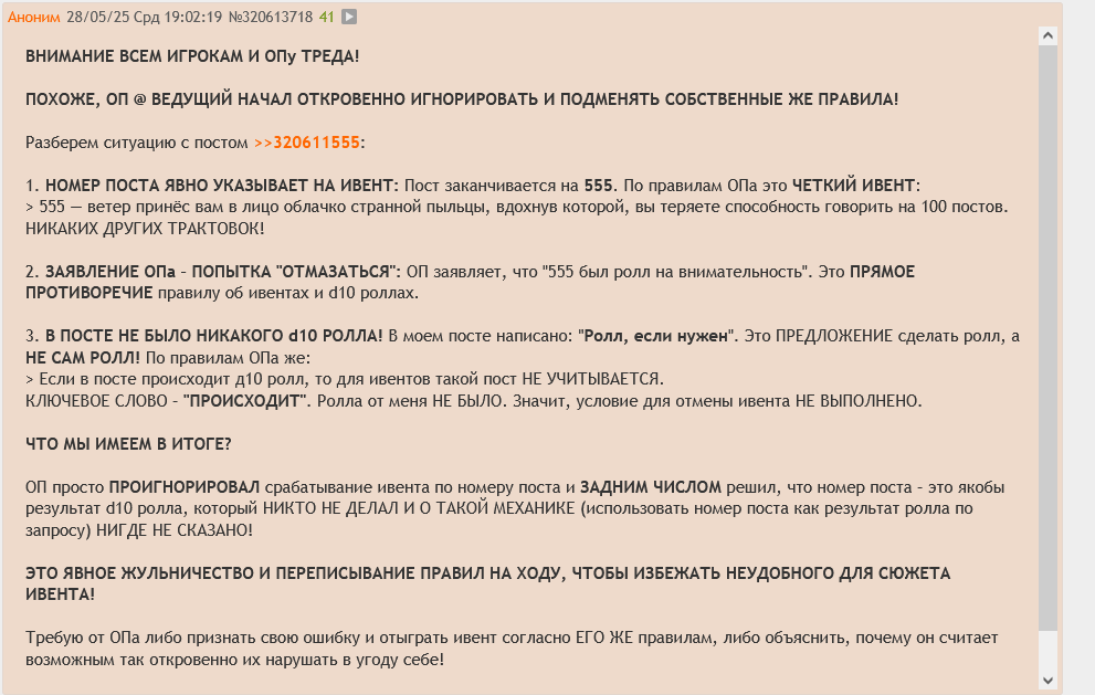 Сейчас полтреда будут выяснять кто прав, а кто нет, поднимать архивы еще с того самого, вычитывать биографию ГМа, деанонить игроков, ругать Ангира, постить боевые шебм и картинки, призывать мочу, рассекречивать общеизвестную информацию, ругать Ангира, устраивать ерп с тентаклями, писать единый свод правил ролеплеев чтобы забыть о нем через неделю.