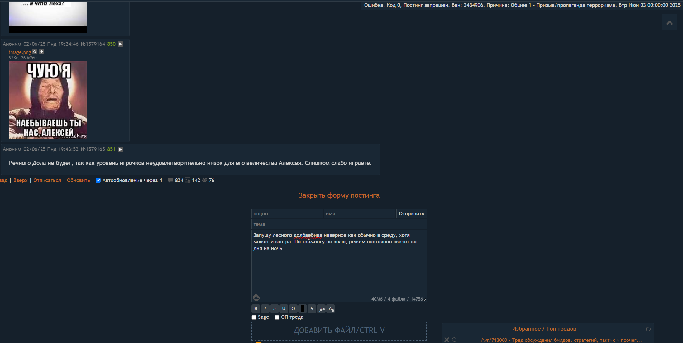 >>1578763 Правила треда: 2. Помехи играм, а именно: локальные шизофорсы (сортиры, скайнеты, самоподдувы, и прочие), вайпы, откровенно вредящие ходу игры действия будут наказываться. 3. Дискриминация игроков, в том числе по признакам: олдфаг/ньюфаг, графоман/мелкопост порицается и будет наказываться. 4. Щитпостинг не приветствуется, а рецидивисты будут наказываться. Имейте уважение к сообществу. 5. Порицается разведение срачей в чьих тредах играть/не играть
