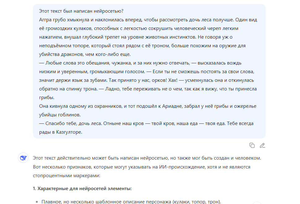 >>1579458 >спрашивать нейронку об авторстве нейронки Орунах. Хочешь, я сделаю так, что нейронка тебе чётко и убедительно распишет аргументы в пользу того, что этот текст был составлен британской королевой за неделю до её кончины?