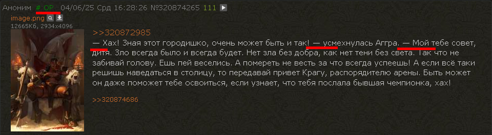 >>1579069 >>1578904 Вы приползёте ко мне... Ну да ладно, второй раз глумиться уже не то. Мармеладного фентези не будет, от меня по крайней мере. Мотивейшн пропал и я уже занимаюсь другими личными проектами, так что у меня просто на это даже времени бы не было. >>1579059 Зачем выдумывать какие-то оправдания своей деятельности? Если хочешь во время обеда залезть на середину стола и насрать туда, то так и сделай, остальное для терпил и зависимых от общественного мнения. Какая разница, что о тебе кто-то там думает, они умрут и ты тоже.