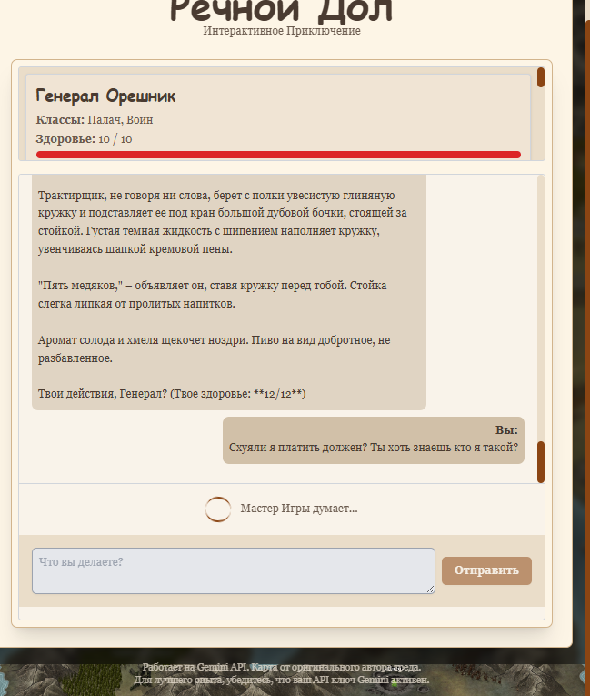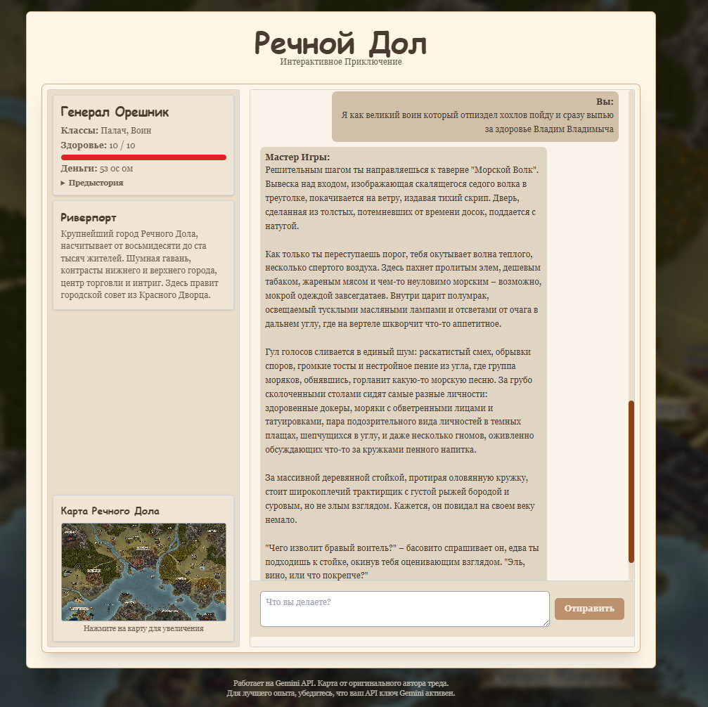 Планирую подхватить брошенное тавернидзой знамя и продолжить водить таверну вместо него. Ну и соответственно постепенно добавлять побольше сюжетных элементов, чтобы не было застоя. Мнение?