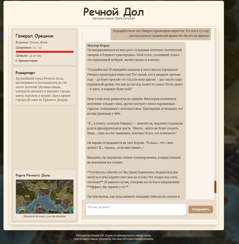 Двачую, реально пресно и плохая динамика. ОП огня и солнца видимо и правда все силы потратил на лорные простыни, а на бодрое вождение его уже не хватило. А жаль, задумка и мир отличные, можно было бы крутую игру отыграть. Может, кто-нибудь угонит?