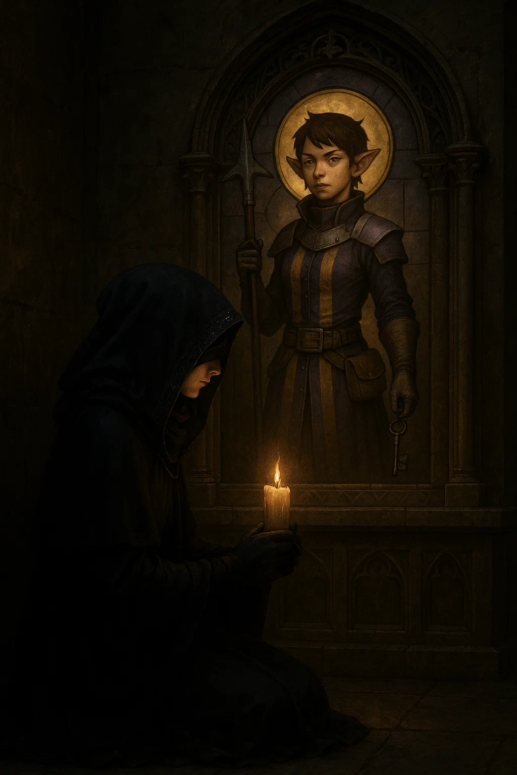 Свеча трещала в углу комнаты, отбрасывая длинные тени на стены, обтянутые бархатом. Илара, величественная и непреклонная, стояла посреди комнаты, её длинные волосы ниспадали каскадом по спине, а взгляд пылал холодным огнём. На полу перед ней на коленях сидел Анонимус, его лицо скрыто за маской, но дрожь, пробегавшая по его телу, выдавала его волнение.