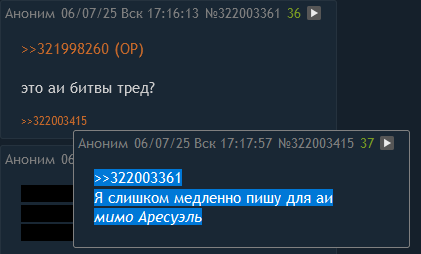 >>1586099 Мне и правда не понять этих дебичей. Ладно отдавать нейронке делать какую-то мутурную работу, типо искать статистику по муравьям узбекистана или кодировать залупу для страницы сайта на который никто не зайдет. Но оутсорсить машине творчество? Это ж блять насколько надо одебилиться и потерять последние зайчатки фантазии, чтобы не суметь придумать и отыграть что-либо самому. В игре, где нет рамок, где твой персонаж ограничен не кнопками WASD, а только полётом твоей мысли, вот так вот брать и просить бота написать слоп чтобы играть? Мне кажется, эти люди дышат ртом и роняют на пол слюни. По-другому я их не могу имаджинировать.