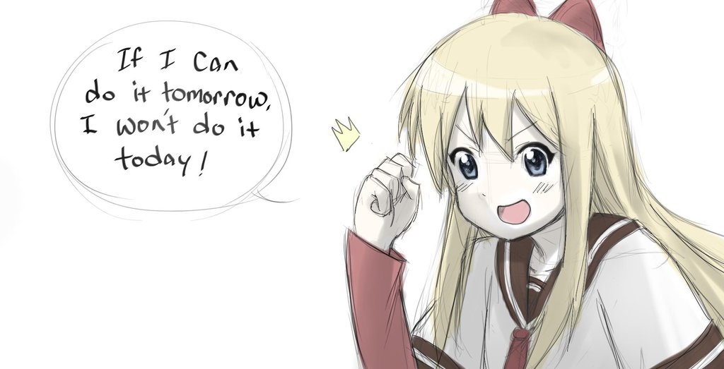 Сатен набирает кучу квестов только для того, чтобы их не делать, ловить тревожку от не делания и прокрастинировать из-за тревожки дальше. Литературно я...
