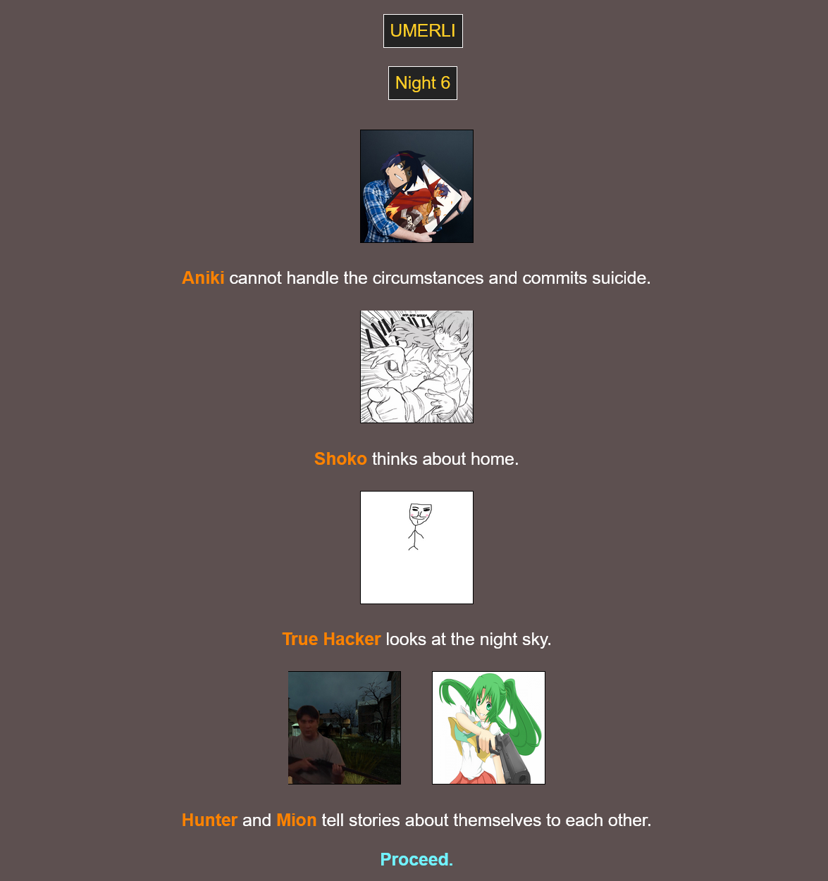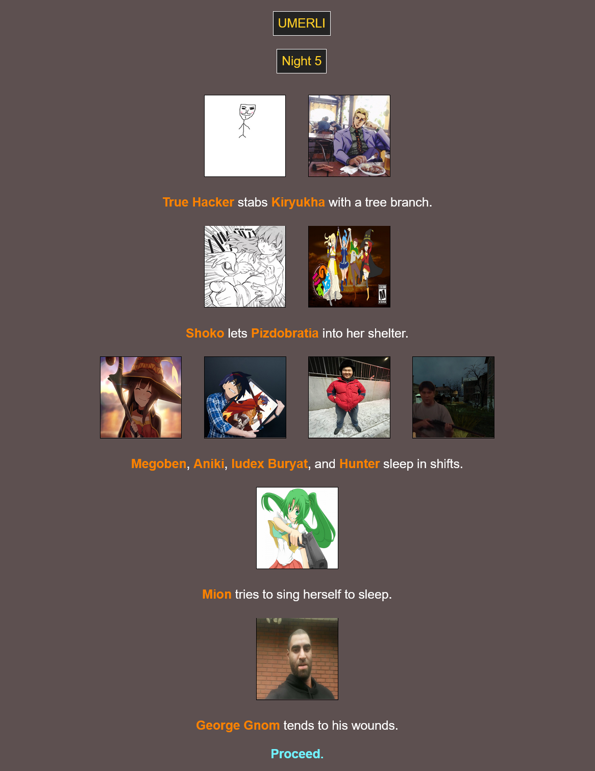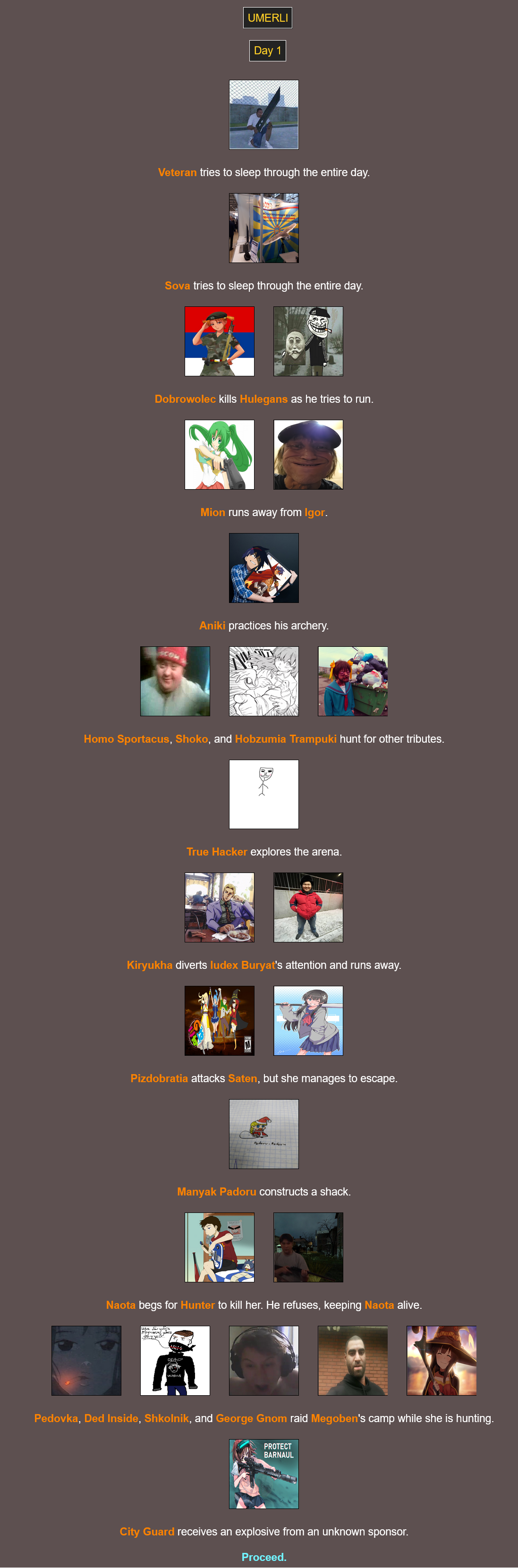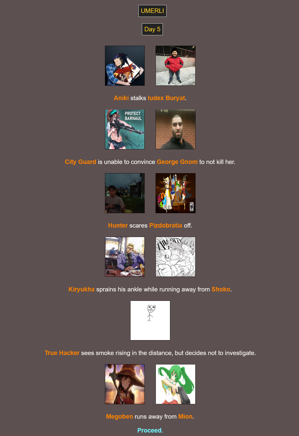 Ничего особого не происходит, кто-то у кого-то ворует, кто-то с кем-то пиздится, всё нормально, разве что Дед Инсайд свалился в яму и помер, Сатэн обронила позвоночник в трусы благодаря Мион, а Наота лишила предводителя ООСД головы.