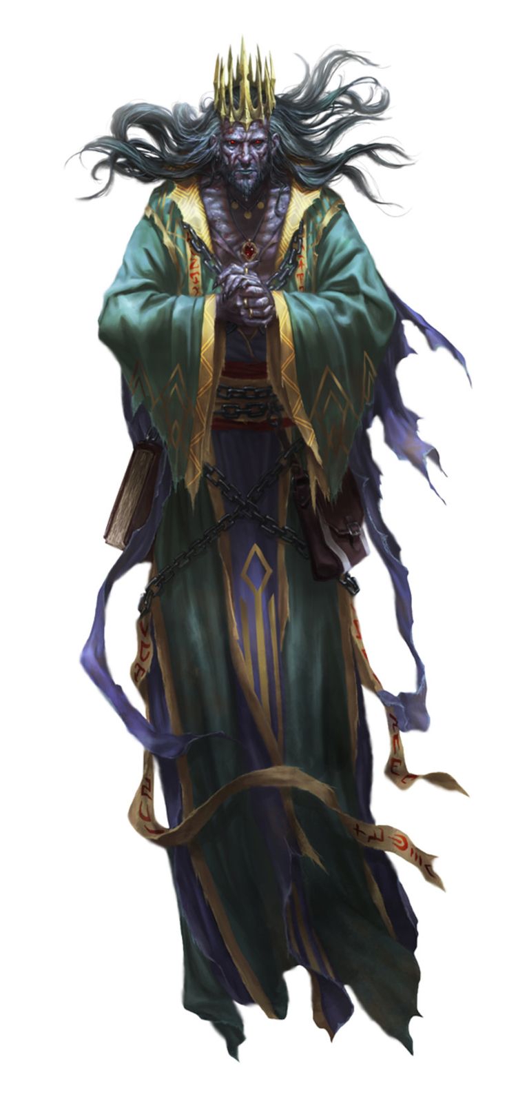 Пространство покачнулось, точно реальность пошла трещинами. Из-под обсидиановых врат начал сочиться вязкий, иссиня-черный туман. Он пах застарелой гарью и едкими чернилами. Клубы мгновенно сгустились в центре зала, обретая очертания высокой, пугающе истощенной фигуры. Рваные одежды колыхались в такт невидимому ветру, а шипастая корона гордо сидела на изможденном лице. Тот самый силуэт, мелькнувший в самом начале пути. Пустые глазницы лича вспыхнули мертвенным льдом. Когда он медленно поднял костлявую руку, по залу пронесся завывающий порыв ветра, пахнущий склепом. Вокруг парящей фигуры начали закручиваться призрачные глифы, готовые сорваться смертоносными заклятиями. От груди нежити, подобно венам, тянулись пульсирующие черно-лиловые нити, впиваясь в огромный фолиант, лежащий на постаменте неподалёку.