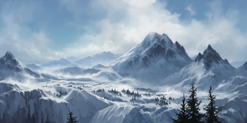 Поначалу такая фауна могла сбить с толку даже опытных путешественников. Ведь все привыкли, что с подъёмом в горы растительность и жизнь становятся всё скуднее. Здесь же, всё с точностью наоборот. Среди ледяной, казалось бы, промёрзшей на сотни метров горной шапки, внезапно могло показаться дерево, а то и не одно. Объяснение этому простое — Магия. Весь север буквально был пропитан ею. Для тех, кто не знаком с волшебством, это казалось необъяснимым явлением. Но те же, кто могли чувствовать эти просачивающиеся всюду потоки, осознавали их мощь и понимали, что магия здесь совершенно иная. Она знакома по своей сути, но в то же время совершенно чужеродна по наполнению. Эта же магия превращала привычные бураны, снегопады и горные холода в смертельную угрозу. Погода здесь ожесточалась с каждой минутой своего буйства, стремясь погубить любого, кто осмелился вторгнуться в эти края. Спасение от стихии можно было найти в бесчисленных пещерах, древних руинах и небольших укрытиях. Было очевидно, что давным-давно эти земли были обжиты очень плотно.