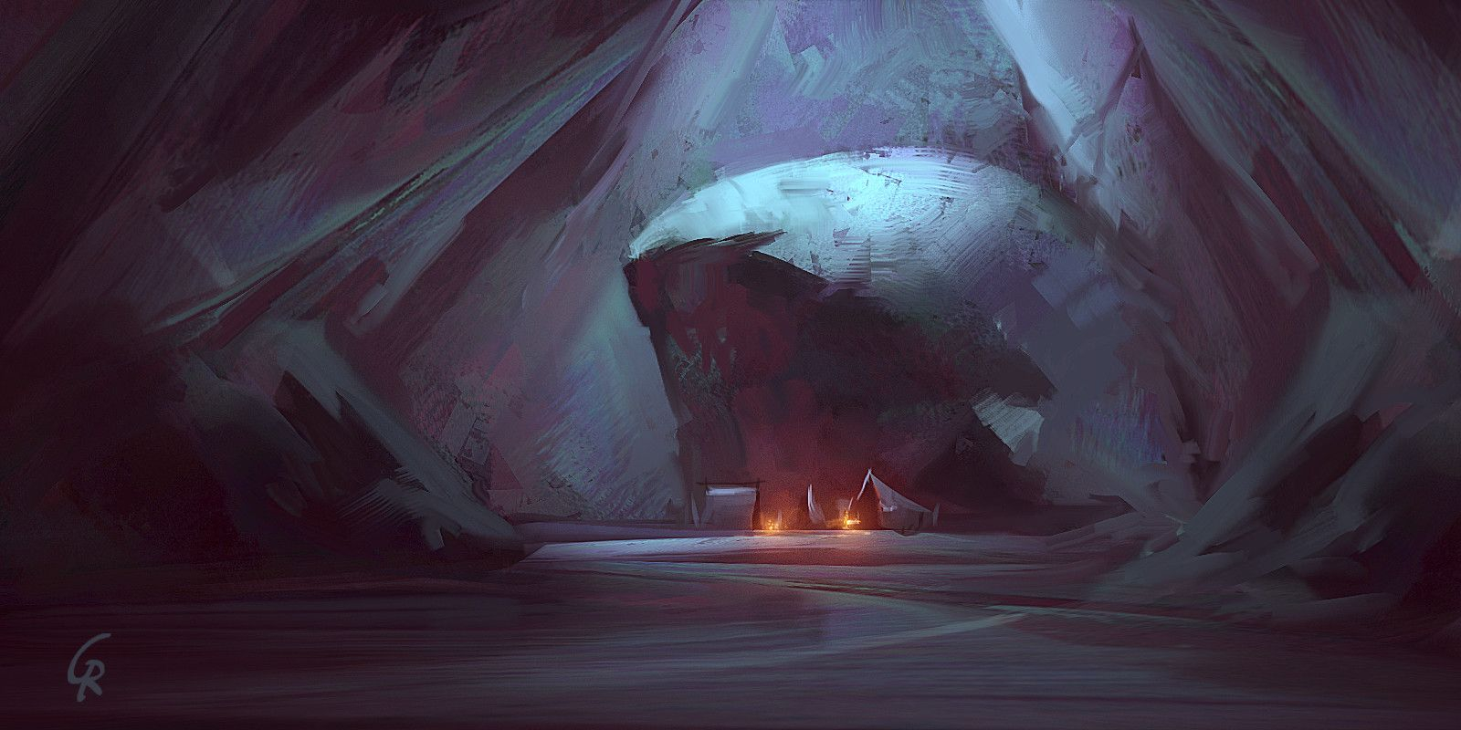 Выбранное ущелье было в разы больше того откуда она выбралась, поэтому ожидать, что и за остаток дня ей куда-либо удастся добраться было наивной идеей. Чем ниже она спускалась по каменистому склону, тем темнее становилось вокруг. Лишь далёкие огоньки манили, обещая приятное тепло и возможное спасение. Подойдя достаточно близко, Ходжин смогла разглядеть один из источников света. Все они были немного разные, некоторые двигались, другие же были неподвижны. Перед ней открылась небольшая пещера, из которой струился тёплый, притягательный свет. Помимо же света, из пещеры отчётливо доносился чавкающий звук вперемешку с неизвестной речью. Тембр разговаривающих существ был знаком авантюристке, этих маленьких, мерзких любителей пограбить людские деревни она встречала не раз. Как будто в доказательство своих слов, парочка таких карликов вышла из светящейся норки и пошла в сторону другого огонька.
