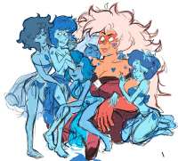 Мне больше всего хочется посмотреть на то, как СА будет сражаться с Александит. Ладно ЖА — у неё и форма более боевая и сама она пиздец как вспыльчива и дестабилизирующими молниями мечет — за бойбабу вполне сойдёт, но эта безобидная синяя няша в платье, как она вообще может оказаться Супер-бойцом и навредить кому-то в ближнем бою?