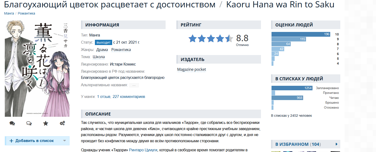 >у некоторых тайтлов вообще никаких сканов в сети даже даже на английском, судя по комментария на шики. Да, ФК уже тогда брали малоизвестное. Да и оценки расставлять в нулевые было менее принято. Да и набор ресурсов был немного другой. Если сейчас манга 2007 года на Озоне висит, то она не с 2007 висит, её недавно повесили.