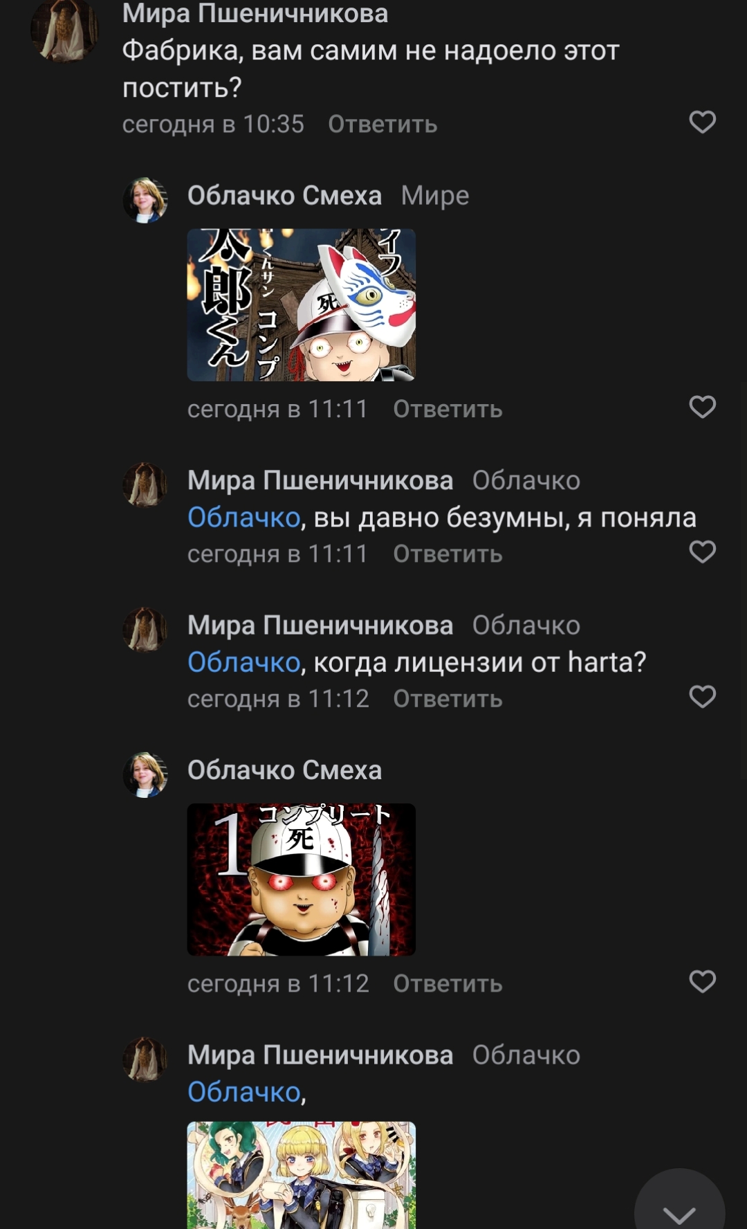 Проблема не в выборе Фабрики, а как раз в каком то ебучем коллекционировании. Это стопорит рынок, манги должно быть много и разной, должна быть массовой, чтобы были работы по душе и тебе и мне. А чтобы так было она должна быть дешевой. И не надо ля-ля, в фикс прайсе норм расходились дешманские томики. Я сам с удовольствием беру гораздо больше по распродажам в лабиринте. Спасибо за внимание.