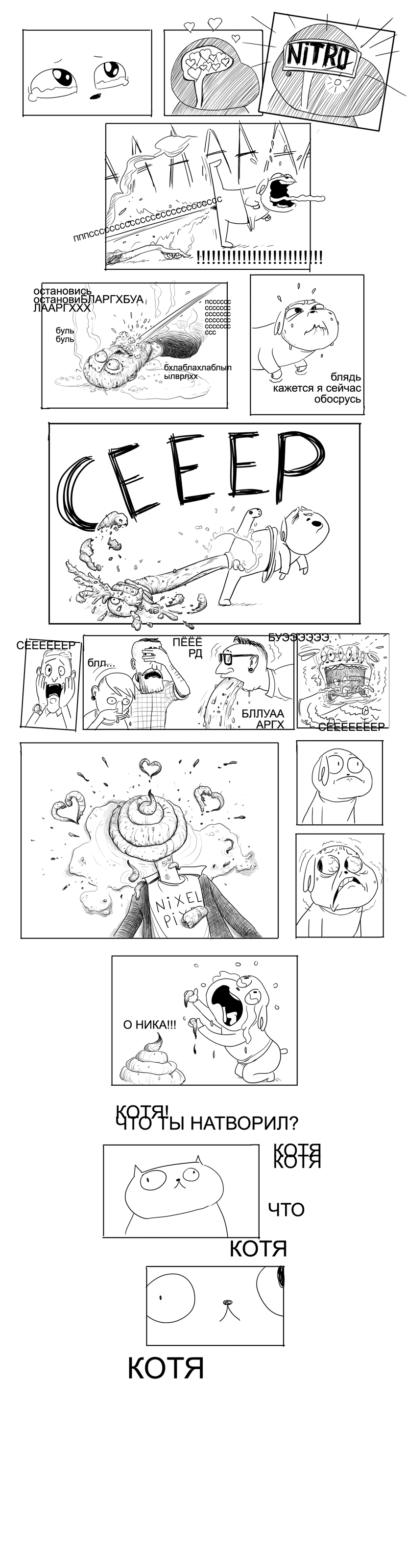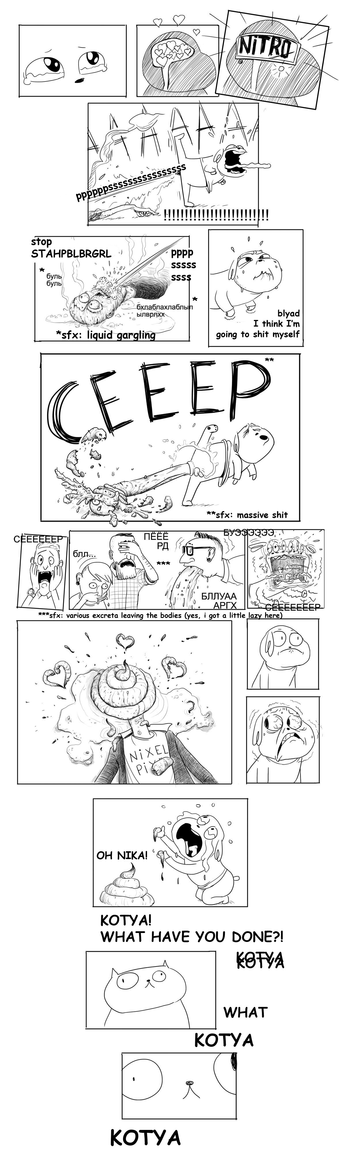>>1163830 >>1163703 Вот кароч. Качество, конечно, не очень, но сами понимаете. Комикс был нарисован целиком за два вечера, на топливе от полыхающей жопы.