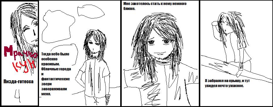 >>1218091 Это выглядит так, будто автору было тупо лень дорисовывать шестую часть, в которой главный герой прыгает с крыши, а все окружающие признают его и восхищаются им как самым выдающимся труъ готом