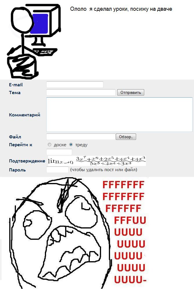 Году в 2010 читал на лурке статью, не помню про что она была - то ли про конкретное произведение, то ли про отдельного автора. Помню лишь то, что там приводился в пример какой-то комикс с двача, по рисунку напоминающий блейм, а на одной из страниц крупным планом нарисован мужик, орущий ты кто ааааааа? Почему-то в подсознании отложилось, будто по культовости эта штука должна быть на уровне комиксов и эроге с маскотами, но на деле я уже несколько лет мало того что на бордах не натыкался на эту хуйню, даже на лурке по тегам вроде манга, мангака-кун и художник-кун ничего подобного не ищется. Покажите мне, что это не было галлюцинацией и эта хрень реально существовала