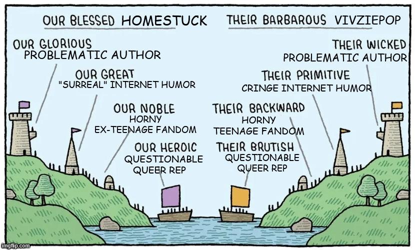 >>1368229 >Попробуй смотреть на ситуацию чуть более оптимистично Зачем? Очевидно что будет кал говна. Продолжение хоумстака обосрано, оригинал хоумстака тоже скоро будет обосран (никто оригинальный гомикс не станет читать, особенно учитывая что оригинальный сайт поломан). Хайсвоп упал пузом на землю, гомосрак в квадрате тоже упал пузом на землю. Хасси поебать. Самое главное и интересное для меня это оригинальный комикс, ну и конфеты допустим, ну и разумеется эпилог. Ебать, коллайд 9 лет назад вышел. Ну допустим вот это канон. И больше ничего настолько же крутого никогда не будет, от этого печальнее всего. У нас больше никогда не будет настолько гениального произведения как хоумстак. Поэтому меня не особо волнует судьба фандома.