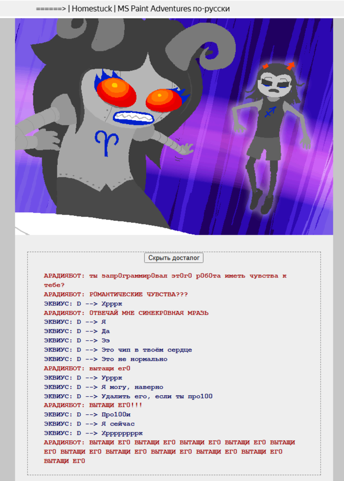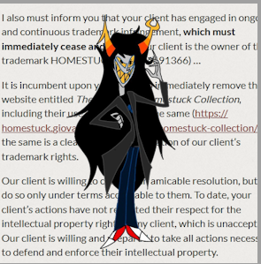 >>1368751 Официальный сайт Домостряла поломан и работает через жопу, поэтому прочитать Гомосрак в оригинале сейчас невозможно. Был Unofficial Homestuck Collection - фан-браузер, воспроизводящий оригинальный экспириенс чтения Хоумстака, с флешками и прочим, и по сути единственный способ (для англиков) прочитать Хоумстак. Хасян, вместо того чтобы починить свой сайт, натравил юристов на создателей UHC, чем снискал очередной повод для ненависти у фанатов.