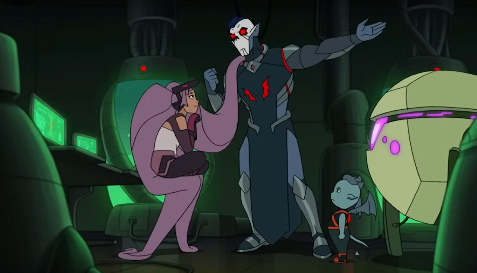 Новые времена диктуют новые правила, поэтому современная анимация весьма минималистична, никаких лишних элементов, чтобы планшетные смузихлёбы не дай бог, не употели отрисовывать лишнее. И если присмотреться, то большинство героев тоже довольно одинаковые на ебало, потому что прорисовки нет. Только дизайн жопы Катры выигрывает, ну мож Хордак ещё. Но старый с голосом Полонского мне нравился больше, он дохуя рокнрольщик. Не такой мемный как Скелетор (наверное, потому что появлялся реже, всю работу в основном аутсорся подсосам), но каждое появление запоминалось.
