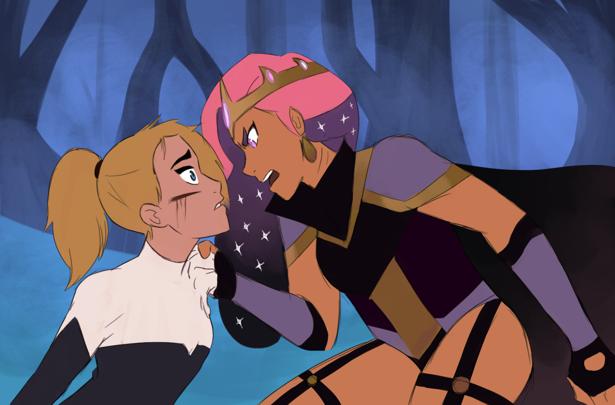 А Глиммер хоть и бунтарка, но с тонкой душевной организацией. Мне кажется, что если брать in character, то она согласится на это то только в рамках вызова. А её лицо в этот момент будет краснее, чем панцирь Скорпии.