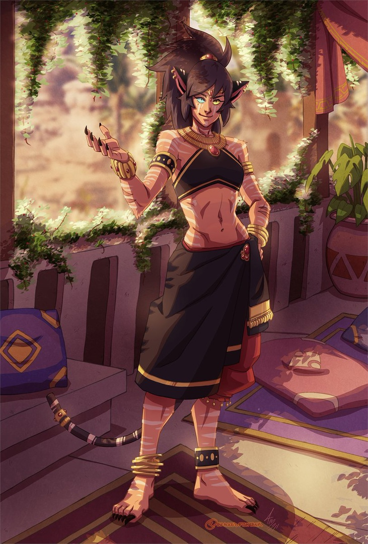 "... Не имея сил более превозмогать мучительно нарастающее желание, Катра внезапно резко надавила лапами на голову Скорпии и сдавлено прорычала в нетерпении: - Просто... сделай это уже наконец! Её голос дрожал от возбуждения и раздражения, - снова она позволила эмоциям и искреннему обаянию Скорпии взять верх над своим холодным самообладанием... Кошка быстро и громко вскрикнула, когда язык её напарницы стал по очереди касаться обоих ляжек торопливо, стремясь наконец-то оказаться между ними... Скорпия восхищалась Катрой: её решимостью, грациозностью, её красотой. Пока подчинённые ей солдаты орды видели в Катре тираншу, способную потягаться в жестокости с Хордаком, - или даже с самим Хорд Праймом, - Скорпия наивно и искренне видела в ней дальновидного командира, которому приходится прибегать к подобным методам, так как "...они рано или поздно окупятся и приведут Орду к величию, которое она изначально заслуживает". "Скорпия верила в эти слова без тени сомнения, - не потому что ей нужна была сила и власть, не потому что её волновала судьба Орды, - но потому, что этого желала Катра, - давный объёкт её сокровенных мечт и желаний... -Не смотри на меня просто так, заверши то что начала! - повелительно шипит Катра, нетерпеливо направляя лицо Скорпии к своему трепещущему лону... Не прошло и минуты, как спина кошки, содрогаясь, выгнулась от напора ласк своей напарницы: непредсказуемо сменяющих друг-друга чувственных поцелуев, стремительных облизываний, дразнящих посасываний и игривых покусываний...