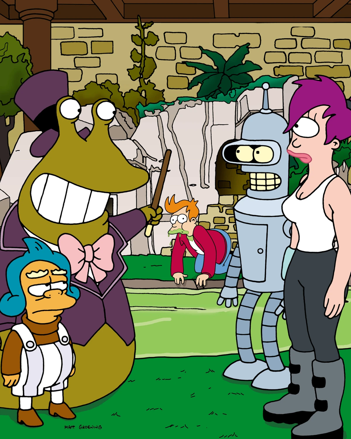 Посмотрел кроссовер с "Симпсонами". Шутки, конечно, ебаное дно, как и сюжет. Не постеснялись даже пса Фрая показать (в Спрингфилде?!) Вообще не понравилось, даже легкой ухмылки не разу не вызвало. Проебали такую возможность скрестить два лучших мультсериала в истории телевидения.