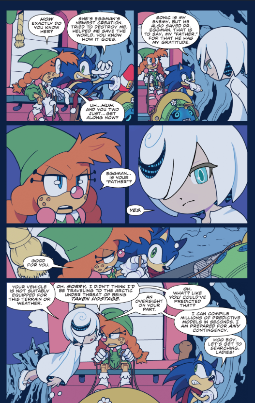 >>1384301 Эггман потерял память из-за инцидента, забыл что он мастермаинд с мастерпланом и начал мастерить игрушки и карусели для деревенских детишек и так хорошо у него получалось что замастерил себе деревянного робота лучше всех предыдущих вместе взятых, которая имеет свою личность и сама может что угодно ремонтировать включая Метал Соника, за которым ее и отправили в последнем сюжете. Эггмана она недолюбливает, но благодарна за свое создание. Тусит обычно с другим зверьем из комиксов, помогая восстанавливать то что разрушил Эггман.