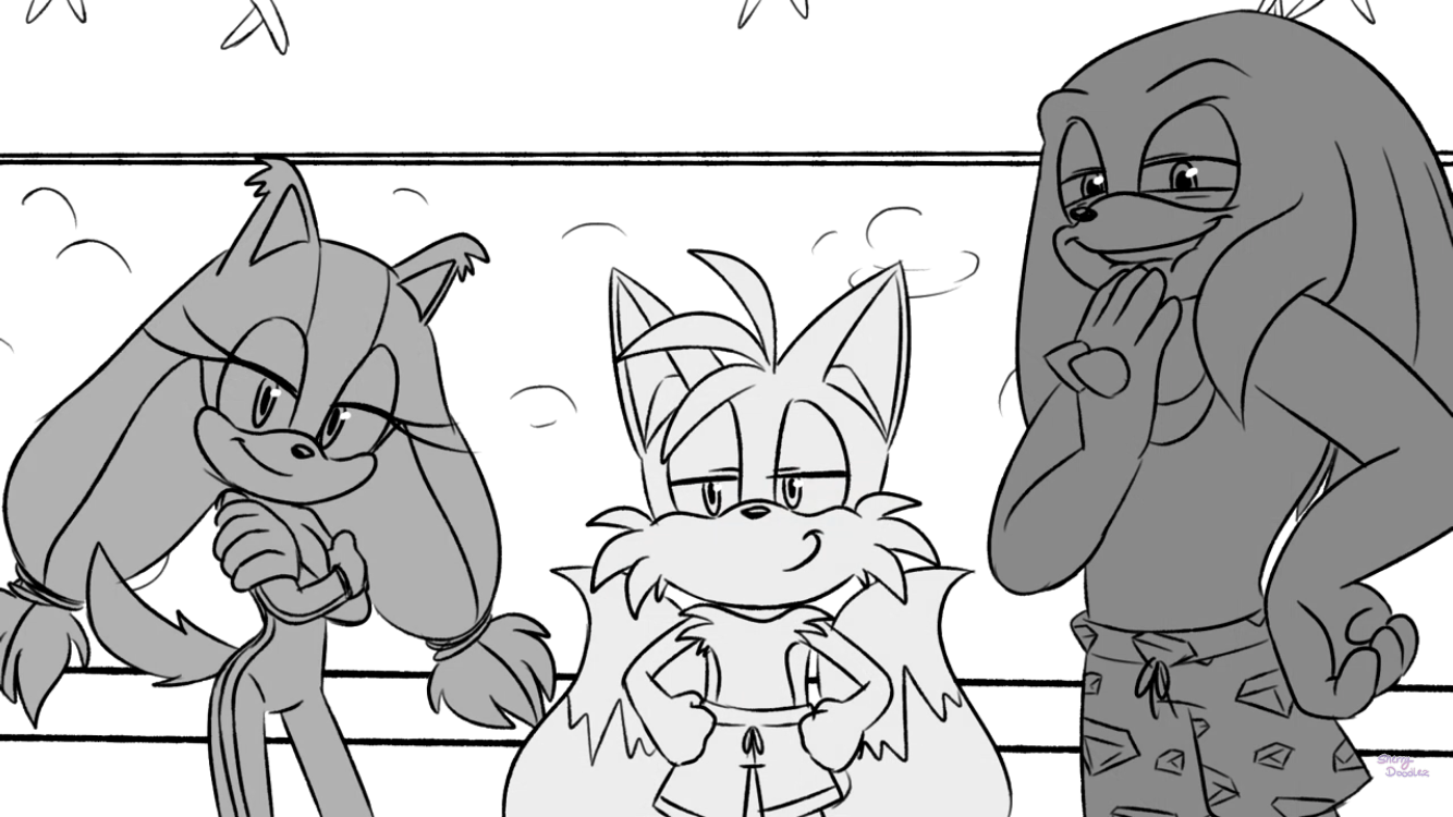 Соник = Санёк Тэйлз = Толян Наклз = Костян Шадоу = Шандрей Эми = Эмма Биг = Боря, пивной алкаш-скуф на 150-200кг, который очень любит сушёную рыбку, и всё время ходит в тельняшке ВДВшника Руж = ???? Роботиник = ?????