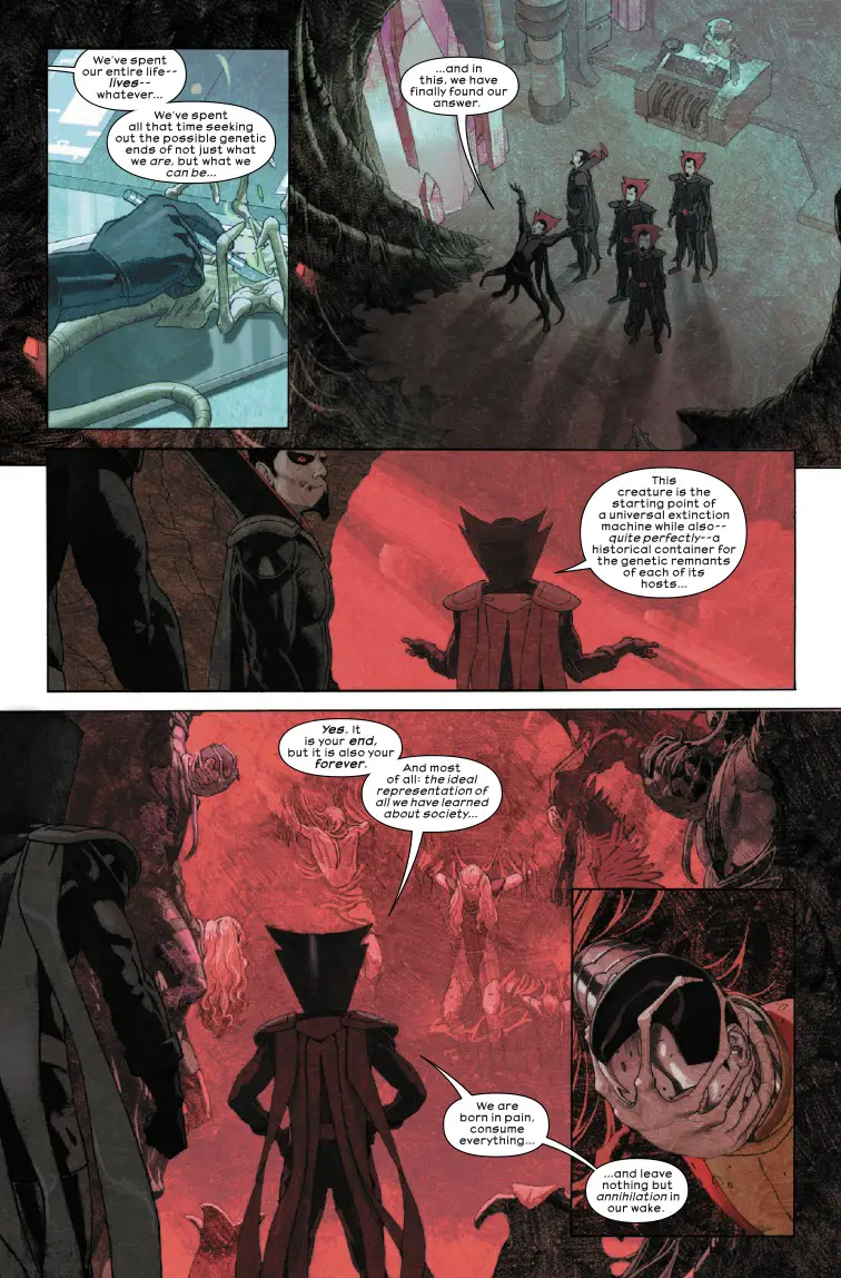 >>1352053 Злыдень смекнул, что ксеноморфы - охуенная тема, поэтому подхимичил над собой, чтоб те его за своего принимали, и перезаражал ими всю колонию мутантов на Марсе (куда те свалили с началом буйства Чужих на Земле), так что живых и на свободе осталось полтора землекопа в лице Эммы, Логана и Брони. На Марс приперлись выжившие с Земли, и Синистер обеспечил им гостеприимный прием.