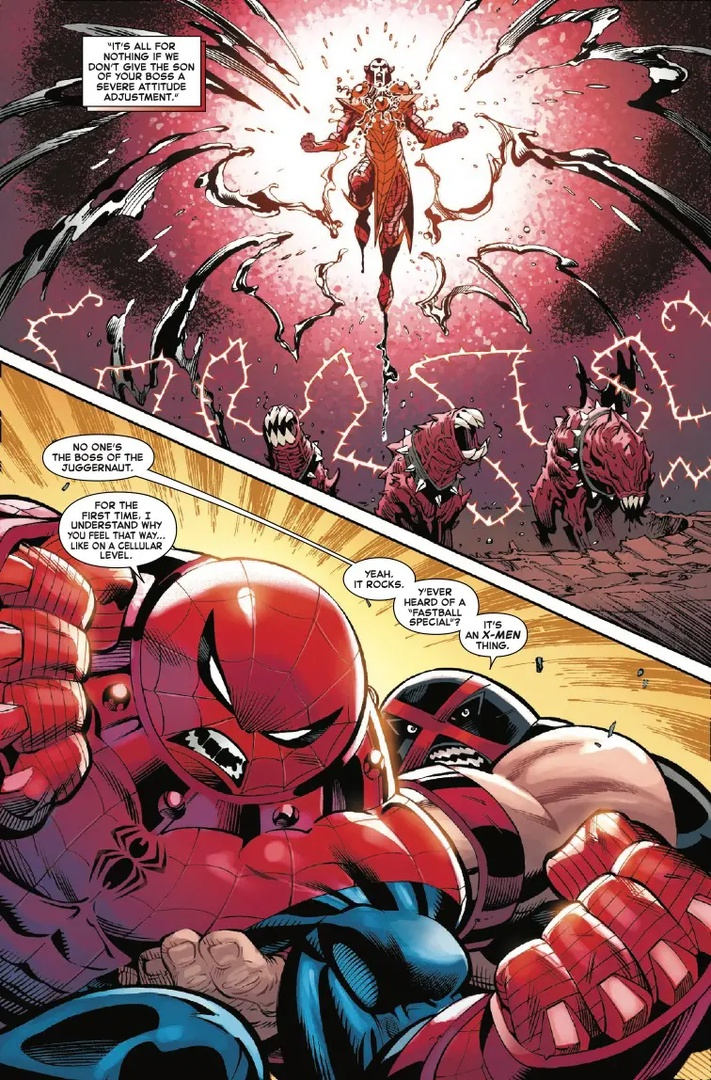 Я пока стабильно слежу за Incredible Hulk, Daredevil, Ultimate Spider-Man/X-Men и нового Venom. Халк неплох, возвращение к хорорачу Юинга пошла на пользу (хотя я не из тех, кто плюётся от прошлого рана со Спейсшип Хулком, это было весело, да и зубастые ёбла Стегмана хорошо подходили этой вакханалии). Дардевил Ахмеда, честно скажу, так себе. Не плохо, не здорово, на контрасте со Здраски особенно. Но опять же, по инерции, оставшейся с чтения рана Здарски сойдёт.