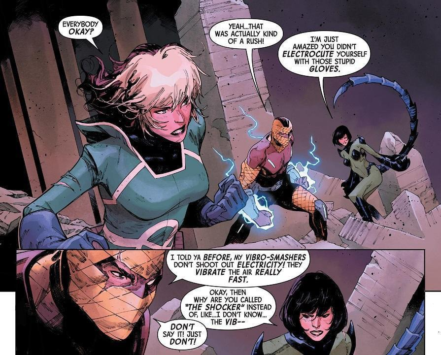 Мне лично нравится, когда суперы занимаются приземлёнными вещами, типа как на кадре с вечеринкой выше. Ещё Superior Foes of Spider-Man зашёл, потому что злодеи С-ранга там показаны буквальными времяпроёбщиками типа нас с вами.