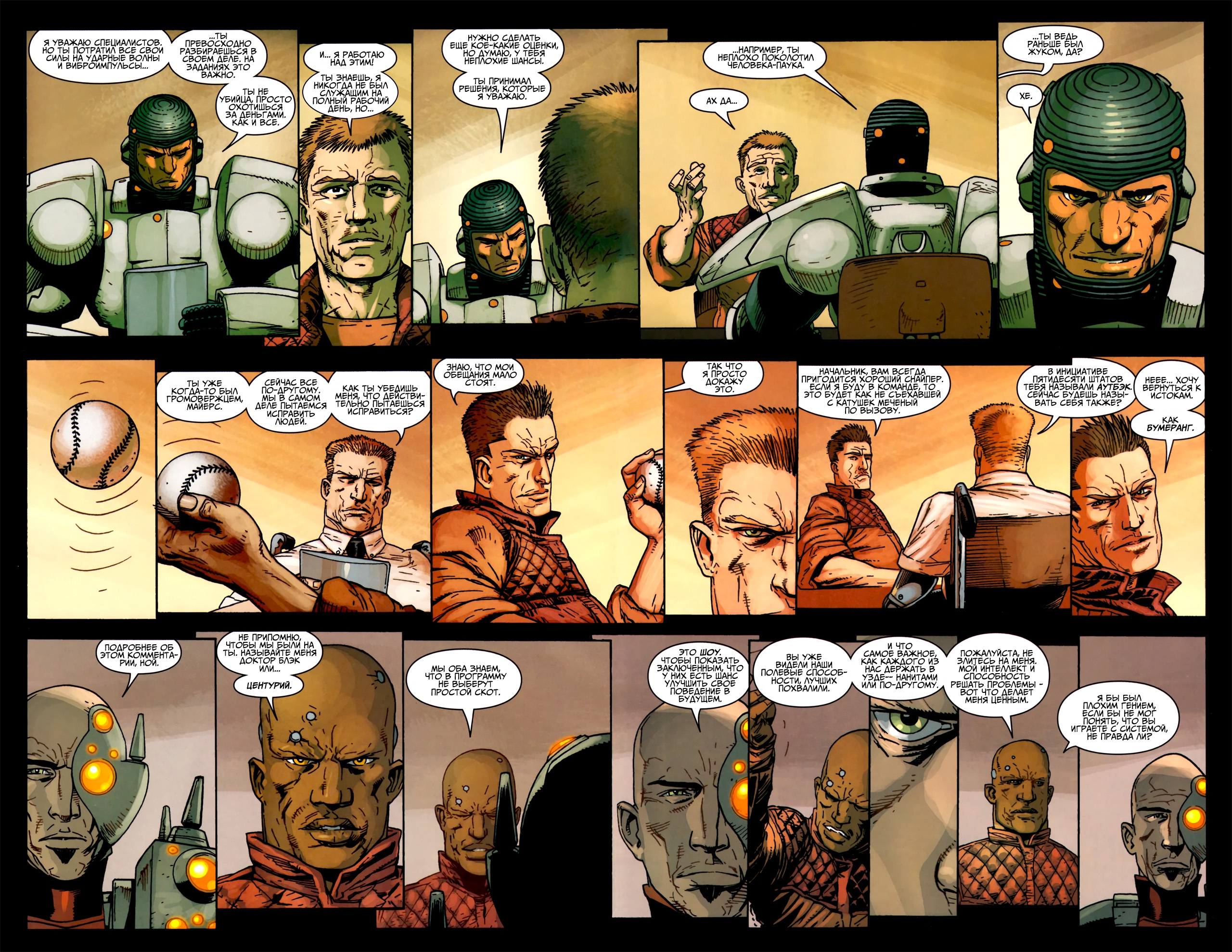 К тому же нашествие пришельцев не так цепляет, как реальная политика во втором томе: ебейший размах; неудержимая бесцеремонно-приземеленная сатира (Хаукай убивает врагов, стреляя в них ногтями); сюжетные повороты на уровне титосов, хоть их мало; куча персонажей — куча движухи. Если бы первые (ну или логичнее вторые) Мстители были по такому сюжету (с косметическими изменения) — то это было бы ABSOLUTE CINEMA.