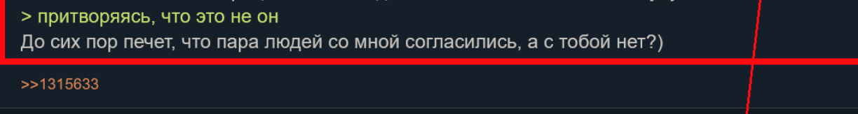 У тебя на самом деле была тактическая возможность сманяврировать, но ты её прямой сейчас проёбал. Я так и планировал, что ты порвешься в ответ на этот пост, обозначив себя.