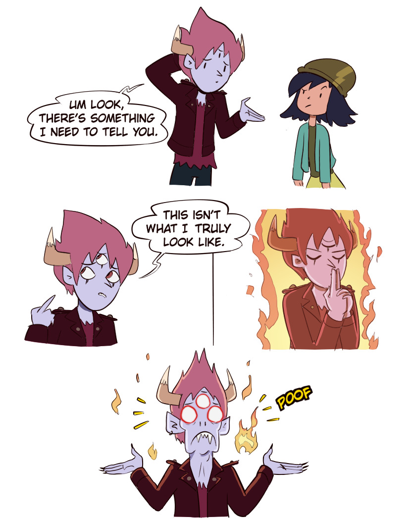 Чем или кем запрещена эта любовь? Не обществом точно. И уж точно не близнецами Блайт (а мамку она вообще не уважает). Так вот, любовь эта запрешена самой Эмити. Она отталкивает его, говорит что его чувства к ней запретны ею самой. А челик от этого недоволен. Эта не спланированная акция по отведению внимания Луз от растущего ее, Эмити, к ней интереса, это осмысленная пасхалка, показывающая что любовь от мужчины для нее запрещена. Вот оно как И не говорите мне что я натягиваю сову на глобус Сычика на рельсу. Я тонкий знаток девичьей психологии.