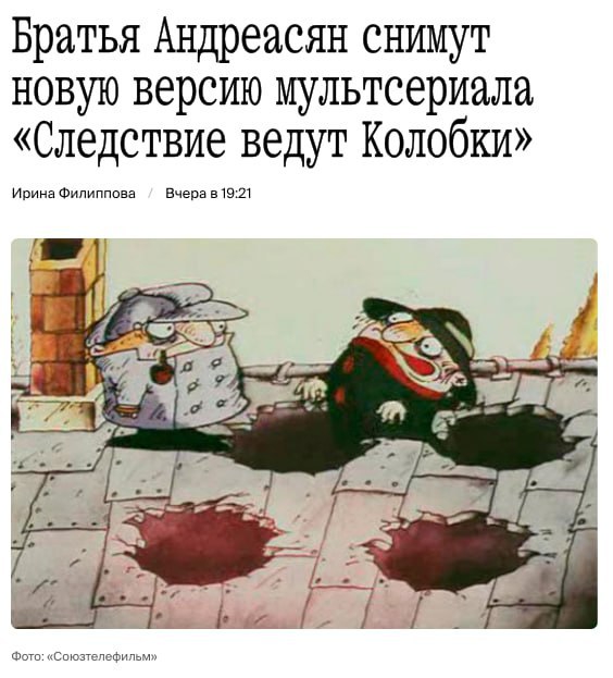 >>1374892 «Кинокомпания братьев Андреасян» получила права на создание ремейка культового советского мультфильма «Следствие ведут Колобки».