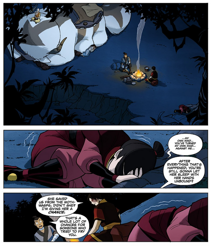 >>1371307 >Вроде во время откровений у костра. >Весь их пиздежь свелся к тому что Азула Зукочку успокаивала, там ему было похуй на всех кроме себя ну и немного Маи.