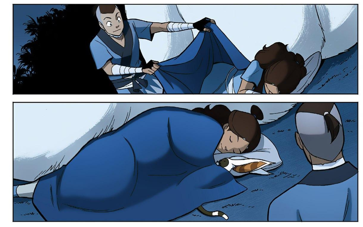 Коррасами ценители видели с 1 сезона. В целом авторы не умеют в любовные линии, это видно и по Аангу, с этим остаётся только смириться.