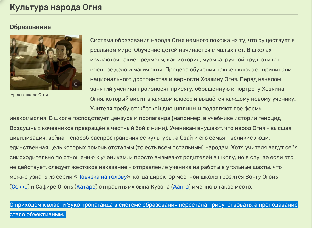 >А когда Зуко учил Аанга технике перенаправления, Аанг узнал движения водников На момент применения приема, Зуко и Аанг его даже не тренировали лол, просто с наскока смертельную атаку отражают. Из этого делается вывод, не о том что Айро крутой прием придумал, а о том что перенаправлять молнии пиздец легко. Что ещё раз подтверждается Азулой, которая тоже их перенаправляет без ахуенных советов Айро.