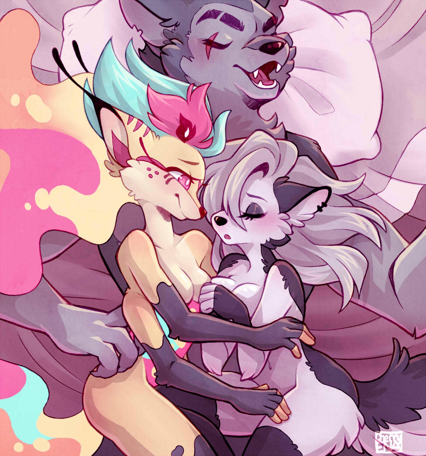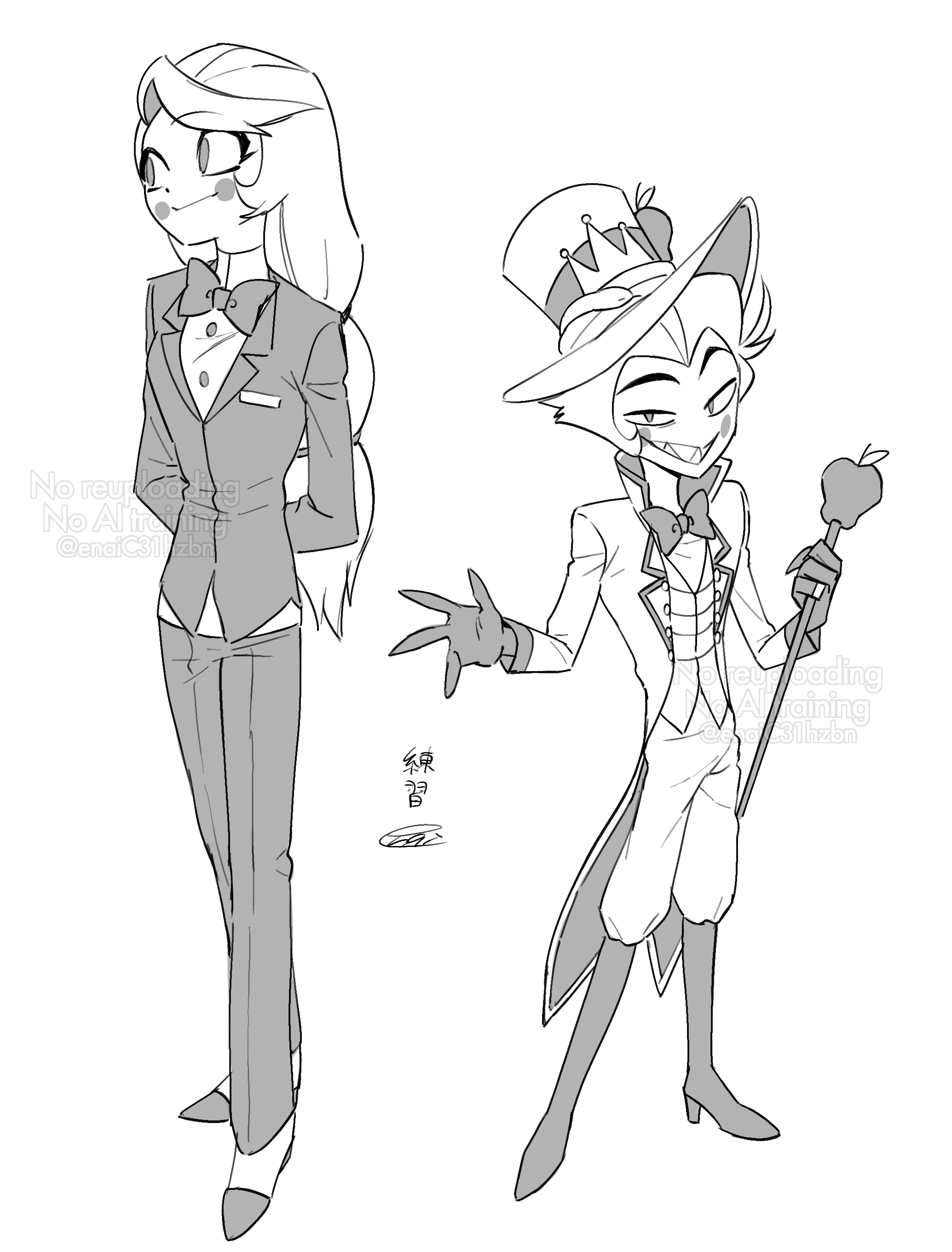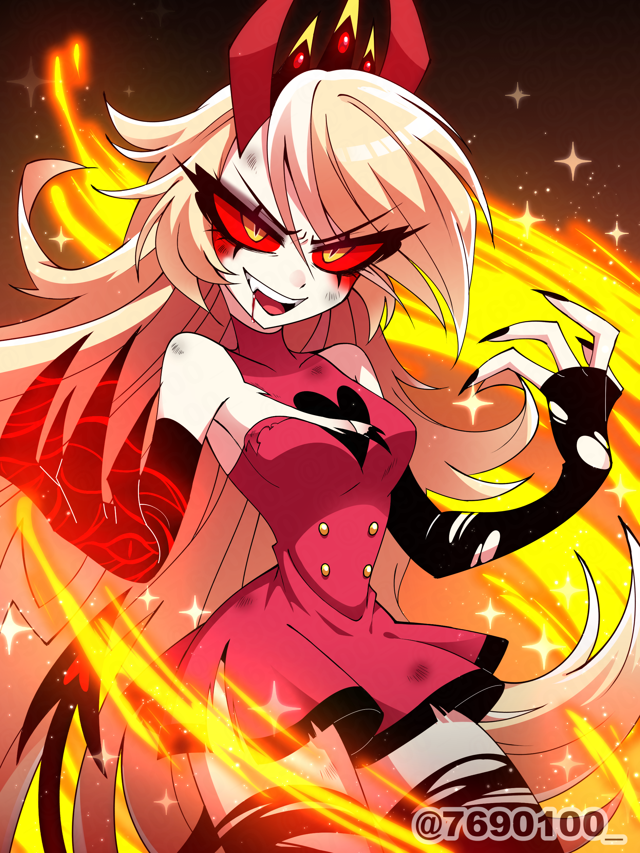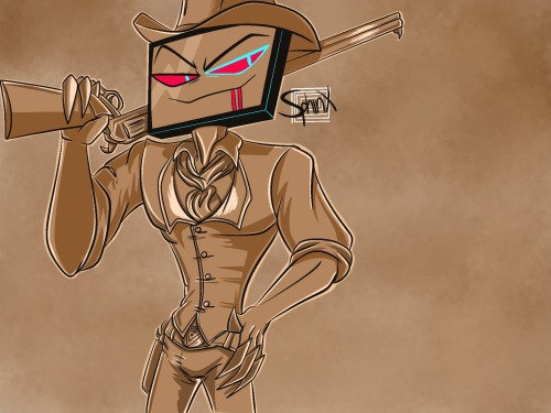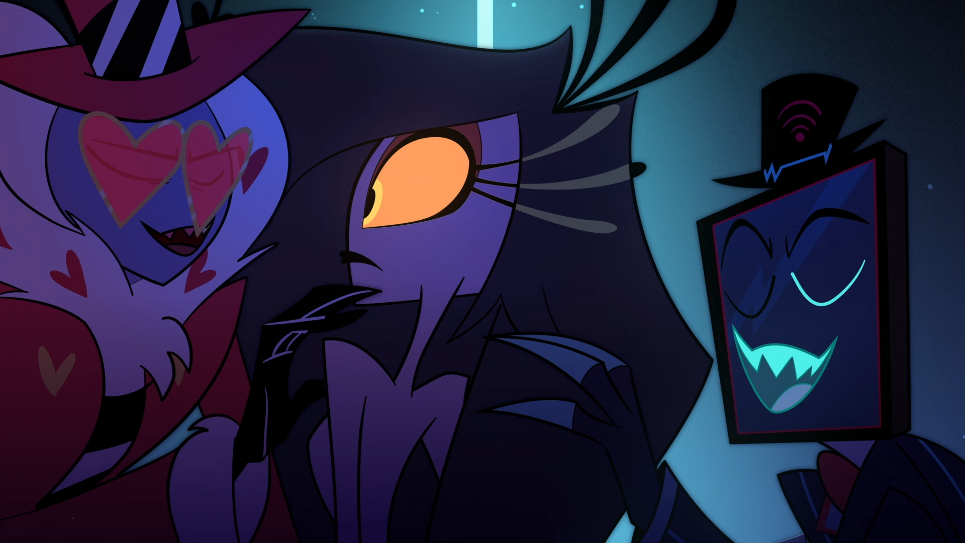 Аластор. Больше подходит на образ того самого Сатаны. Но Вивзи не знает, что с ним делать. В начале она его сделала социопатом-людоедом-асексуалом, и это норм. Но потом в духе твиттерской ебанашки она его сделала не аромантиком и добавила ему пару в виде Роззи...