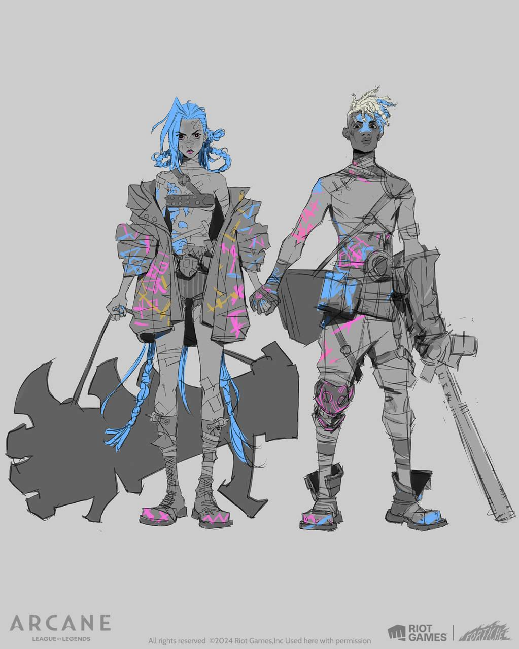 Интересное открытие сегодня для себя сделал. Оказывается одни из концепт художников для Аркейна - русская девушка Аня из Новосибирска (понаехавшая в ДС). Её телега @newmilky_art, она не только Джинкс с Экко рисовала, а практических всех персонажей, даже Майло и Клаггора для альтернативной вселенной.