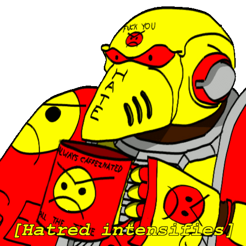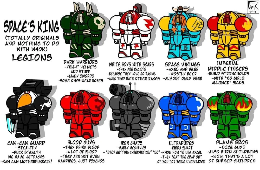 >>1373903 Ну смотри: 1. NO. GIRLS. ALLOWED!!! 2. Вместо "мы победим всем магией дружбы, ведь даже в демоне есть доброта" тут "HATE!! HATEEEE!!! KILL XENOS!!! MAIM HERETICS!! FUCKING PINK LASERS!!!"