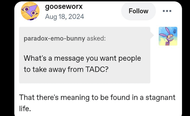 Короче пацаны, я понял. TADC - это аллюзия на христианство, а точнее - критика авраамического концепта вечной жизни после смерти.